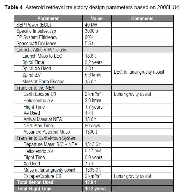 Для того, что бы доставить астероид на высокую околоземную орбиту достаточно 0,174 км/с (или 174 м/сек). Остальное делается гравитационным маневром у Луны. Примеры таких астероидов есть в ПДФке.