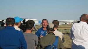 Дублирующий экипаж во время вывоза что-то усиленно втирал журналистам