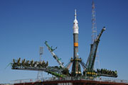 Ракета с "Союзом ТМА-05М" установлена на стартовой площадке Байконура