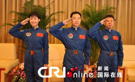 Китайские космонавты Цзин Хайпэн, Лю Ван и Лю Ян, выполнившие первую в истории китайской космонавтики ручную стыковку пилотируемого корабля "Шэньчжоу-9" с лабораторным модулем "Тяньгун-1" на орбите, сегодня утром завершили 14-дневный период изоляции. Сегодня также состоялась их встреча с журналистами.