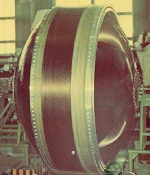 Метод намотки цилиндрических конструкций стеклотканью, пропитанной связующим, позволяет изготавливать изделия диаметром до 3000 мм и длиной до 9000 мм