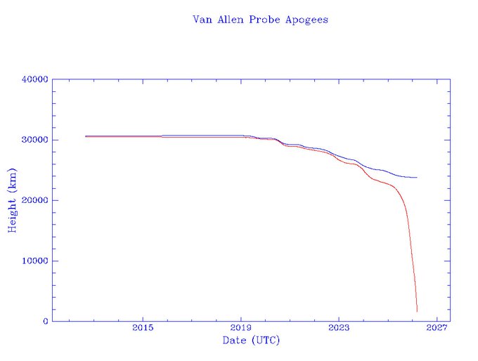 Цитата: Старый от 21.02.2026 05:12:20У Ван Аллена 1 перигей сейчас 125 км и за месяц он теряет в апогее по 2000 км. По видимому в течение пары месяцев ему конец.