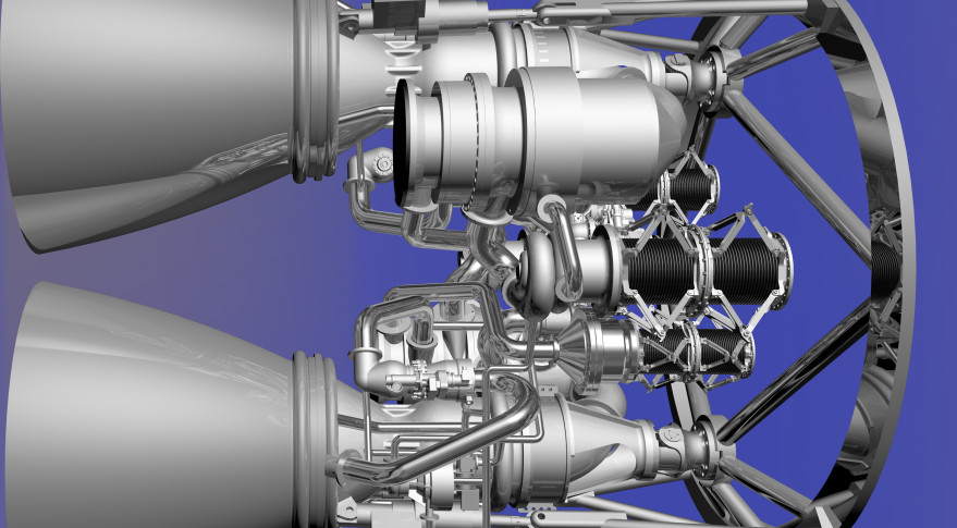 Подписано: AR-1 twin booster engine configuration. Credit: Aerojet Rocketdyne