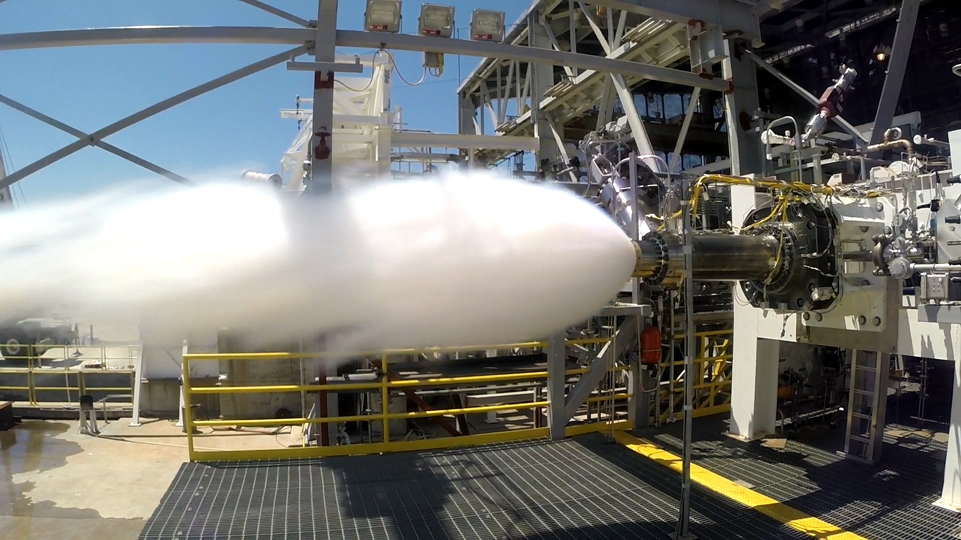 Aerojet Rocketdyne tests its AR1 engine preburner, which was built using a proprietary alloy and 3-D printing technology, at NASA's Stennis Space Center