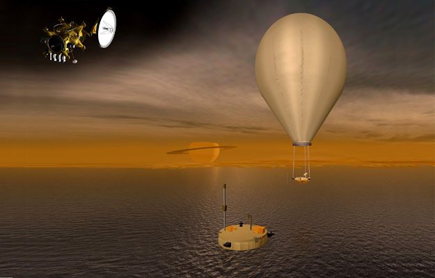 The proposed Flagship mission Titan Saturn System Mission would consist of a NASA orbiter and an ESA lander and research balloon. NASA/ESA