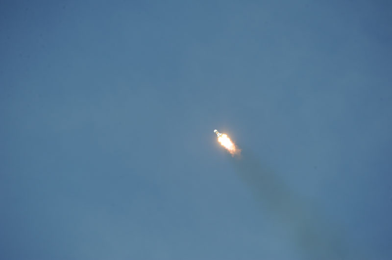 Применен мощный телеобъектив. С ним кажется, что сооружение справа находится в 10 метрах от ракеты, а на самом деле между ними 400 метров.