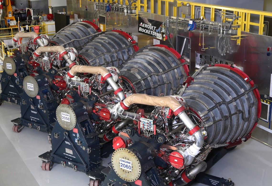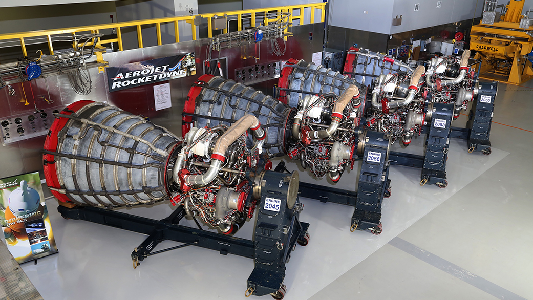 Right: Last April, the last of 16 RS-25 engines from the space shuttle program passed inspection, capping a 51-month acceptance test series at NASA's Stennis Space Center near Bay St. Louis, Mississippi and clearing all 16 engines for flights to send multiple missions to the Moon.