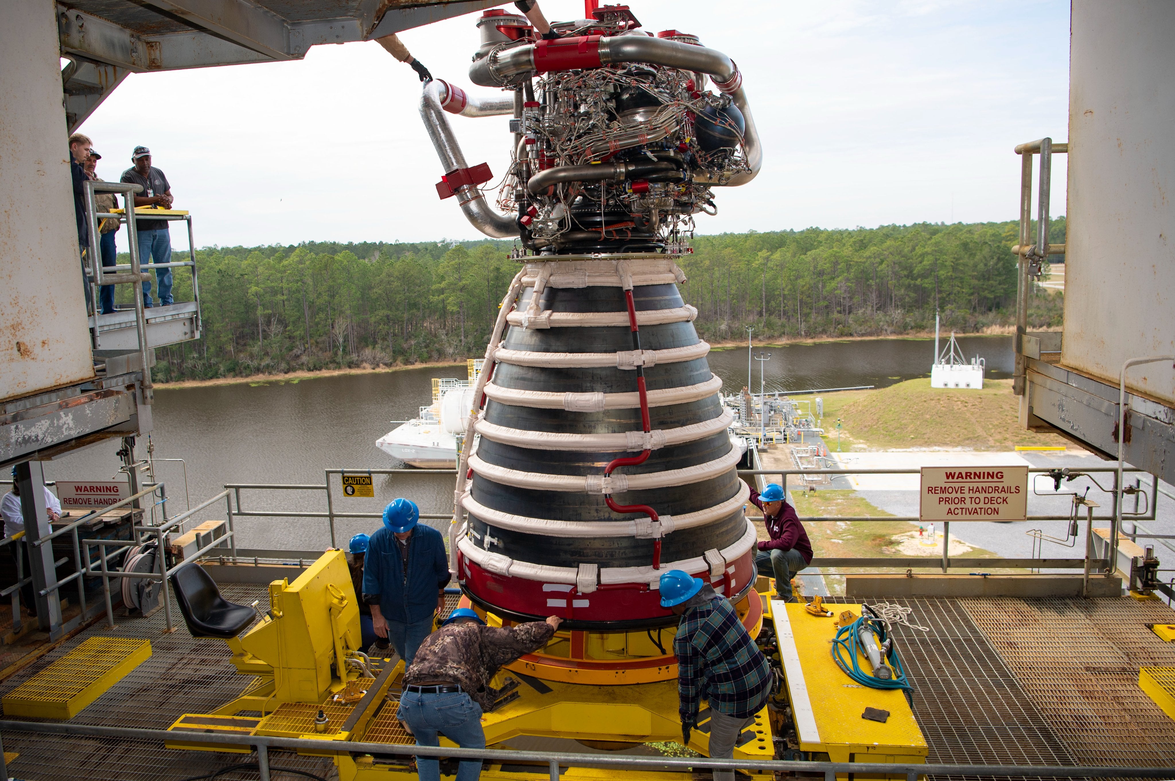 Первый серийный RS-25E установили на испытательный стенд в Стеннисе.