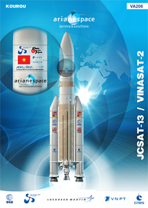 The Ariane 5 mission with JCSAT-13 and VINASAT-2 will be the 206th flight of an Ariane vehicle, and therefore carries the VA206 designation in Arianespace's launcher family numbering.
