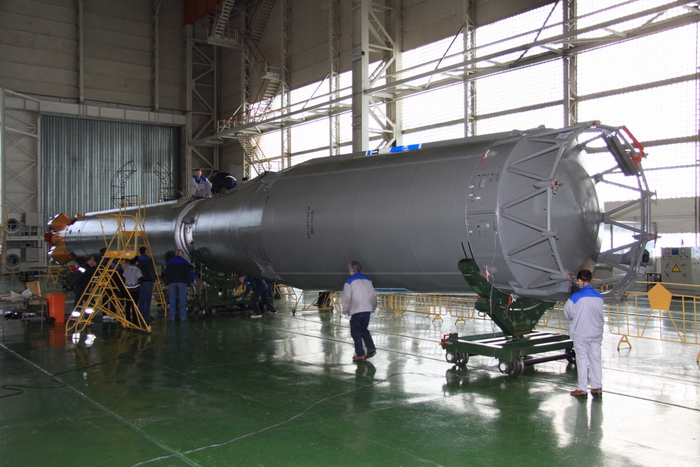 7 марта намечается провести сборку «пакета»: ко второй ступени ракеты-носителя будут пристыкованы четыре блока первой ступени.