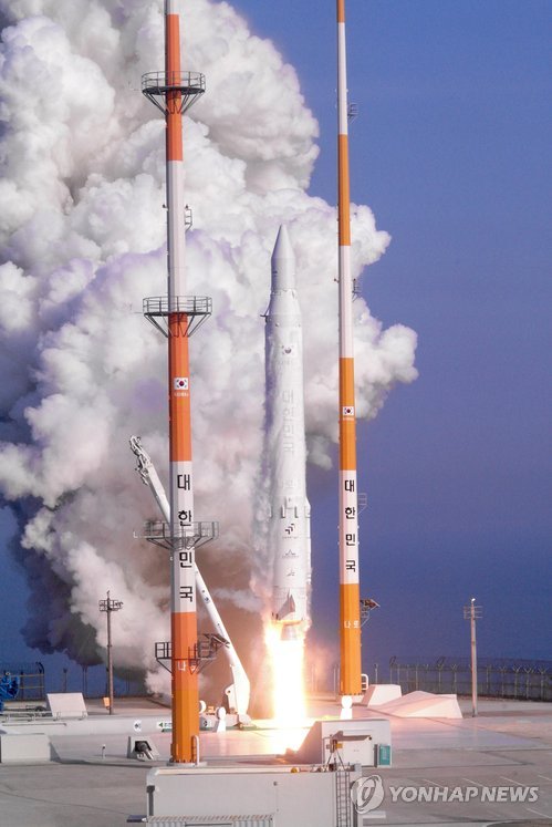 The Korea Space Launch Vehicle-1 (KSLV-1) lifted off from the country's Naro Space Center at 4 p.m. An initial confirmation of whether the launch was successful will be made when and if the beacon signal from the rocket's payload satellite is detected by a ground station in Norway about 140 minutes after its takeoff from the launch site, located 480 kilometers south of Seoul.
