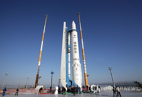 "The transportation of the Naro-1 to its launch pad was completed at 9:31 a.m. today," the Korea Aerospace Research Institute (KARI) said in a released statement. KARI is the main developer of Naro's upper second-stage rocket. The first-stage rocket of the two-stage Naro-1 was built by Russia's Khrunichev State Research and Production Space Center.
