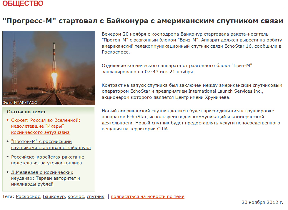 Традиционный невыразимо лютый &$#дец с РБК: ""Прогресс-М" стартовал с Байконура с американским спутником связи"