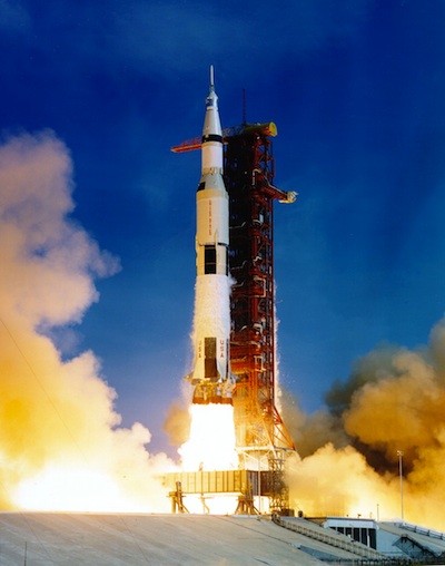 Apollo 11 launched from the Kennedy Space Center on July 16, 1969. Four days later, Neil Armstrong and Buzz Aldrin became the first humans to land on the moon.