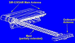 The heart of the SRTM radar was the SIR-C/X-SAR radar, which flew twice on the space shuttle in 1994. Several modifications were made, which gave the SRTM system new capabilities compared with the SIR-C/X-SAR. The major changes were the addition of C-band and X-band antennas at the end of the 60-meter (200-foot) mast. These secondary, or "outboard" antennas, allowed the radar to use a technique called interferometry to map the elevation of the terrain in a single pass, which was not possible with SIR-C/X-SAR. Interferometry can be likened to a person dropping two pebbles into a puddle of water and watching the ripples, or concentric circles of water emanating outward from the splash, meet and interfere with each other. Those interference patterns caused by the rippling water from the two pebbles are measured by the radar systems onboard the shuttle to acquire topographic data. The main antenna on the shuttle and the outboard antenna on the tip of the mast bounced radar signals off Earth simultaneously, and then retrieved "backscattered" radar data as the signals from both antennas scattered and began to interfere with each other.