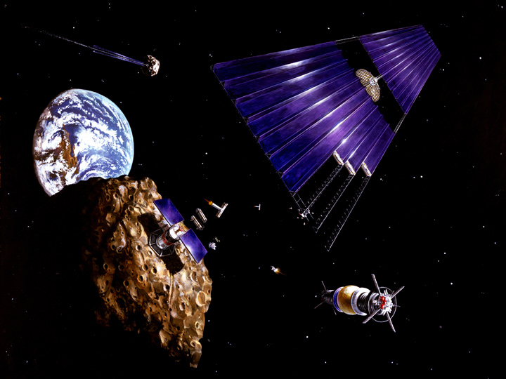 Астероиды предоставят многочисленные выгоды для человечества. Объём их разработки со временем может вырасти до десятков миллиардов долларов в год. «Роботы-старатели» должны получить доступ к драгоценным металлам, которые в высокой концентрации имеются на астероидах и, тем самым, обеспечить устойчивое снабжение постоянно растущего населения Земли (иллюстрация Denise Watt/ NASA).