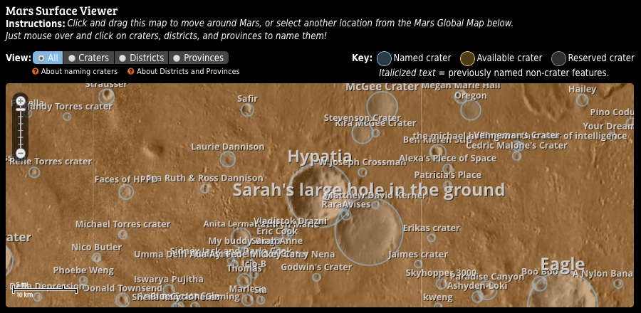 Кстати, чтобы разговор был предметным, нужно знать о чем идет речь. Вот фрагмент марсианской карты от uwingu.com:
