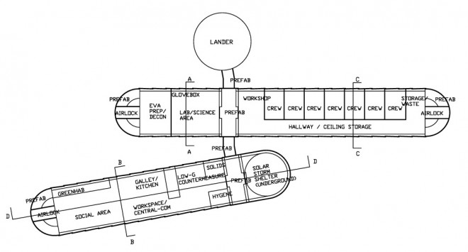 Эти картинки объясняют, откуда выросла позднее концепция Mars One: на них есть и лэндер, и длинные цилиндры - прообразы "драконов" и надувных "сосисок" ...