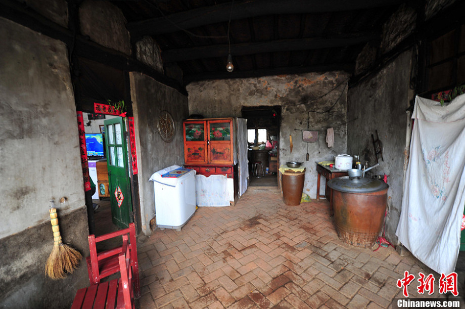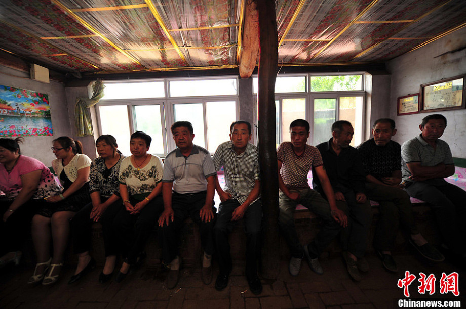 Брат Чжан Сяогуана, его сестра и ее муж смотрят телерепортаж с Цзюцюаня:
