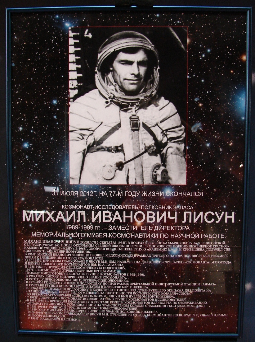 31 июля 2012 г. после тяжелой и продолжительной болезни у себя дома в Звездном городке умер космонавт Михаил Иванович Лисун. Очень жаль. Мои соболезнования...