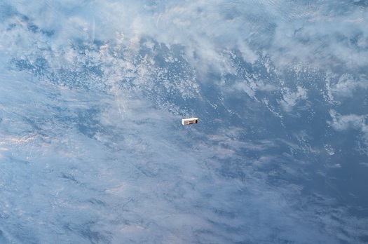 TechEdSat-3p deploys from the Japanese Small Satellite Orbital Deployer aboard the International Space Station. (Credit: NASA)