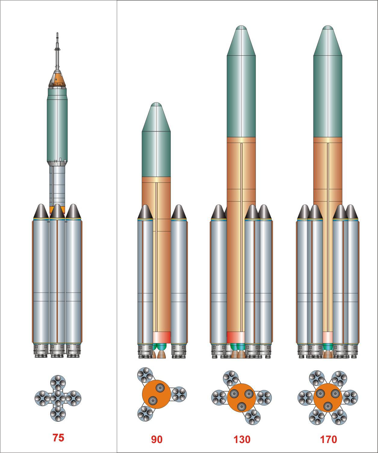 Совершенствование ракеты-носителя в части перехода на двухступенчатый вариант с использованием на второй ступени жидких кислорода и водорода позволит существенно улучшить ее технические возможности, обеспечив в вариантах с тремя, четырьмя и шестью боковыми блоками первой ступени достижение грузоподъёмности от 90 до 170 т.