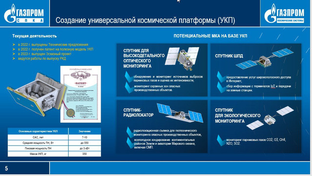 Все эти спутники "Газпром СПКА" создаст на базе универсальной космической платформы (УКП), которую он разработал и запатентовал.