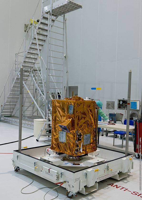 These pre-launch activities kicked off this month, following arrival of the two spacecraft in French Guiana. Preparations for VNREDSat-1A began inside the Spaceport's S5A building, while Proba-V was based at the S1B clean room facility.