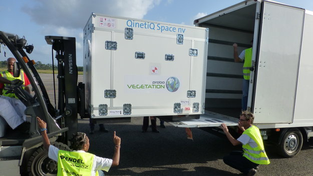The Proba-V auxiliary passenger on the same Vega flight (Vietnamese Earth observation mission VNREDSat) arrived in Kourou the same day at 16:00, travelling with an Air France charter cargo.