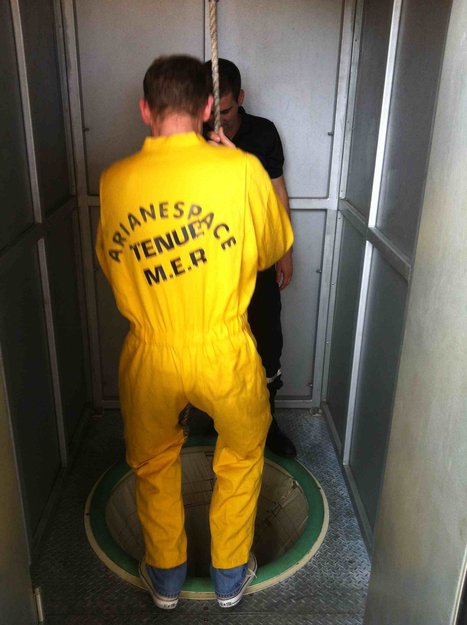 This day was mostly dedicated to team safety training, in order to allow them to work on the gantry of the mobile launch tower in the presence of the Vega launcher. The spectacular part of this training was a jump fr om second-storey scaffolding down into a security sock. The whole team passed – though some members asked to try again! A full visit to the launch tower was then conducted. The team had the chance to view each stage of the Vega launcher on the launch pad, up to the AVUM fourth stage.