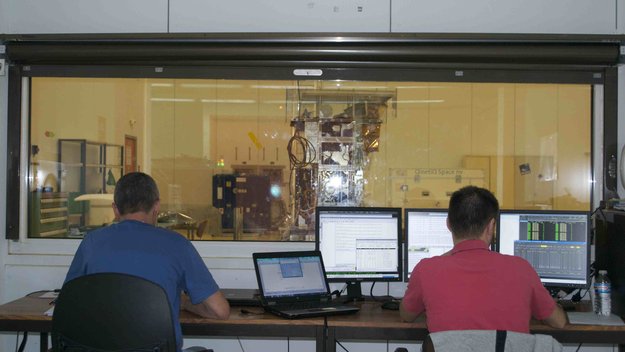 Today was dedicated to the reinstallation of ADS-B into the satellite and its full functional test. The DLR team arrived on site around 10:00 and after receiving their security badges were allowed to enter the EPCU.