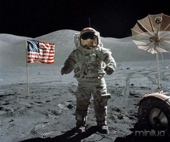 Na foto seguinte, reparem que não há estrelas no céu, e nem outro corpo celeste além da Terra e do Sol. Como não existe atmosfera na Lua, as estrelas devem ser visíveis, mesmo com a interferência do Sol (basta olhar no lado oposto a ele).