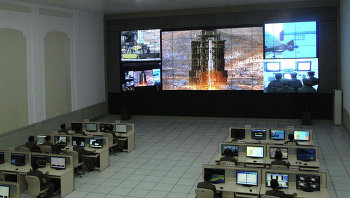В центре управления полетами наблюдают за запуском ракеты-носителя "Ынха-3" со спутником "Кванмёнсон-3" в КНДР