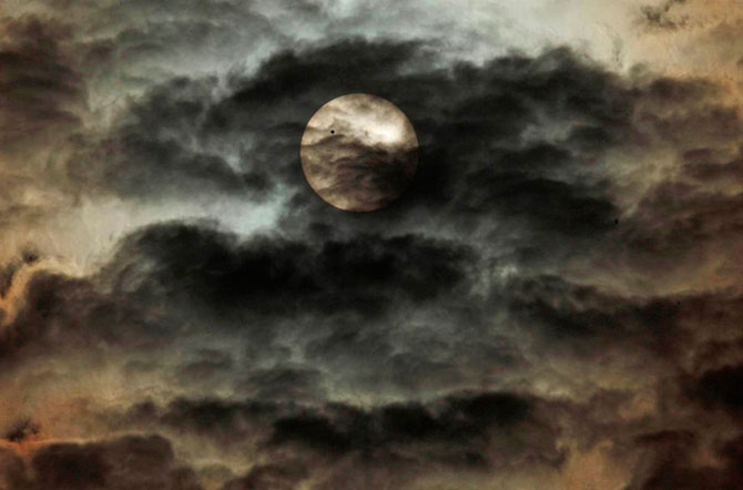 Редкий снимок из Индии. Венера проходит по поверхности Солнца. Такое событие в следующий раз произойдет не раньше, чем через сто лет.