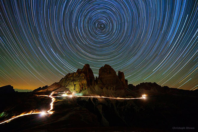 Снимок «Звездные линии за Доломитами», Кристофа Отавы, занял второе место на конкурсе «Earth & Sky 2012».