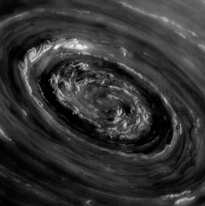 Впечатляющая полярная буря на Сатурне была заснята космическим аппаратом «Cassini».