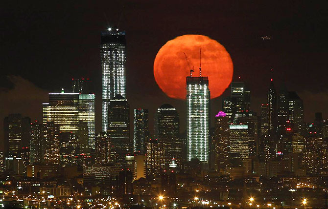 Суперлуна над Манхэттеном. Шестого мая Луна была максимально близка к Земле, что и было названо Суперлунием.