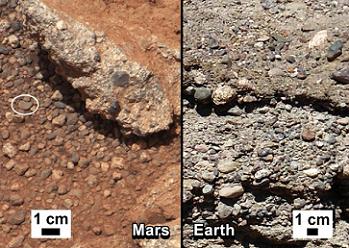 Water transport, according to NASA, is the only process capable of producing the rounded shapes of clasts of this size.