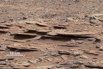 On 2 September, the 27th day of Martian operations, Curiosity snapped a photo of a rock outcropping called Link, an outcropping that penetrated from a Martian surface that was elsewh ere blanketed by the reddish-brown dust common on the surface of the Red Planet.
