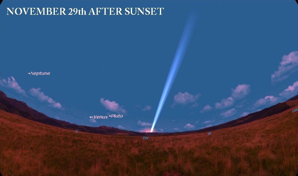 C/2012 S1 (ISON) начиная с ноября, возможно с максимальной яркостью как у полной Луны, но очень рядом с Солнцем на небе, далее, если комета переживает теснейшее сближение с Солнцем, она переходит на ночное небо с приличной яркостью