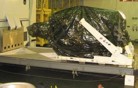 В контейнере спутники везут в транспортной конфигурации, незаправленые, с транспортными креплениями.