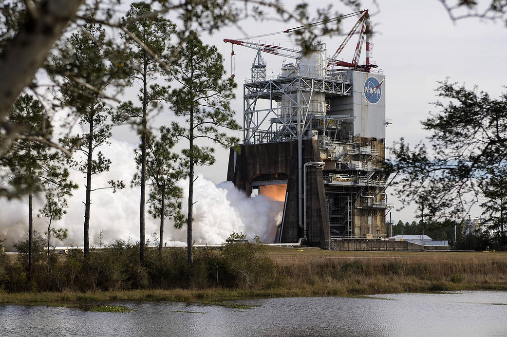Тестовую версию двигателя RS-25 для этой ракеты крепят винтами к испытательному стенду NASA и запускают на 500 секунд в такой же последовательности, как и при штатном запуске.
