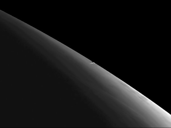 На снимке запечатлено    облако пара, которое возникло в результате    сгорания спутника в атмосфере.    Опубликованное изображение сделано в    оптическом диапазоне с помощью    инструмента SEVIRI, который предназначен для наблюдения за состоянием атмосферы.
