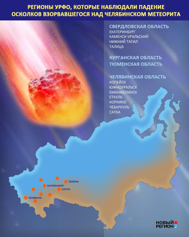 Напомним, что на данный    момент число пострадавших превысило    500 человек, 112 из них были госпитализированы.    Двое находятся в реанимации. Явление видели в Башкирии, Свердловской, Тюменской, Курганской, Челябинской областях, а также на северных территорий Казахстана, где обломки метеорита уже перестали искать.