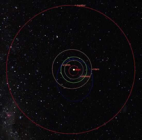 Билл Кук из Центра Маршалла НАСА вычислил орбиты Челябинского болида до падения (синяя линия) #RussianMeteor pic.twitter.com/9B13ACck