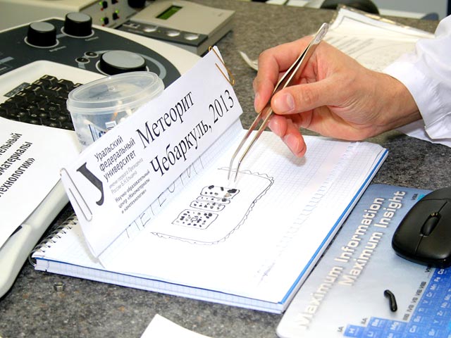 "В лабораторию научно-образовательного центра "Нанотех", в Екатеринбург их в количестве 53 штук успели доставить только к 22:00... Оказалось, что найденные осколки - это самые настоящие каменные метеориты, которые содержали до 10% металлического железа, а также оливин, сульфит. Это классический хондрит, один из самых распространенных видов метеоритов, которые когда-либо приземлялись на нашу поверхность", - рассказал ученый.