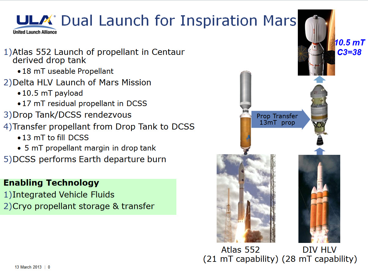 Пускать можно только одной ракетой FH, иначе потребуется стыковка, которая сразу переводит проект в жанр научной фантастики (если лететь в 201 8) . FH не может отправить 10 тонн к Марсу? Плохо, если так. В 2011 году считалось, что сможет. На странице 4 этой презентации прям так и написано: