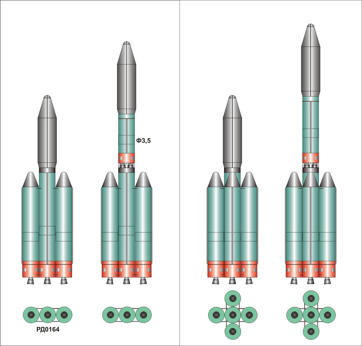 Какая бредятина. При живом Зените, летающем Протоне и вот-вот назревающей Ангаре лепить опять непонятно что, да еще в освоенном диапазоне нагрузок, да еще опять сосисочное...  И это при том, что приличного водородного РБ у нас как не было, так и еще нет.  А чехарда с количеством типов ЖРД ведь тоже идиотизм: все никак не воскреснувший НК-33, РД-191, РД-193, а теперь вот еще и РД-0164. Все они на 200 т на горшок и не годятся для супертяжа, ибо носитель с кучей движков никогда надежным настолько, чтобы пускать нагрузки ценой в миллиарды долл, не будет.