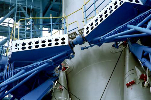 Совершенно верно, и расстояние между этими креплениями по моей оценке минимум на полметра больше, чем наиболее широкая часть центрального блока, причём концевая часть этих ферм довольно длинная, при укорачивании диаметр 4,1 метра должен влезть.