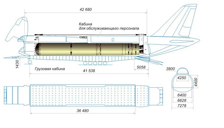 По картинке от "Прогресса" высота первой ступени без межблочного отсека около 36,5 метра (чуток меньше на самом деле - по пикселям картинки считал). Тика в тику под грузовой отсек Руслана. Скорее всего им и собираются перевозить.